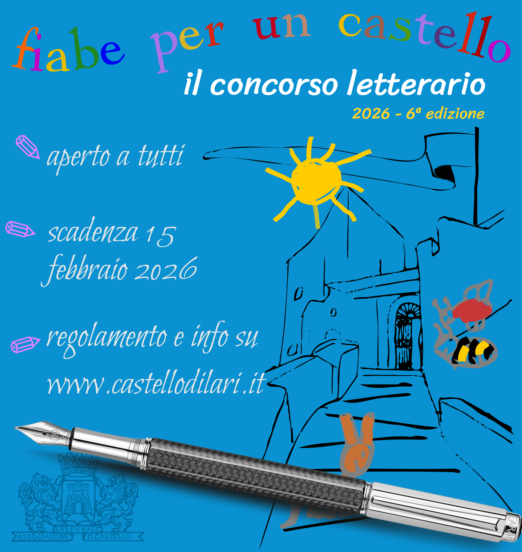 L'Associazione Culturale "Il Castello" ODV organizza e promuove la sesta edizione di "Fiabe per un Castello", un concorso letterario dedicato all'infanzia, con diverse caratteristiche che lo rendono davvero peculiare, se non unico.